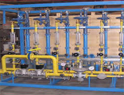 We offer complete design & engineering, fabrication, installation and commissioning of Natural Gas Pressure Reduction & Metering Skids. The RMS skid includes gas conditioning equipment like Knock out drum, Two stage filter separator/ Dry gas filters, Vane mist eliminator, Scrubber. It may be necessary to do temperature compensation for Joule Thomson effect using Water bath heaters – Electric/ Gas fired. The conditioned gas pressure is reduced in redundant pressure reduction station then measured at Custody metering as per AGA standards using single/ double chamber orifice assembly, Turbine/ Ultrasonic flow meter, Gas Chromatograph with flow computers with facility for integrating with plant level SCADA system with Telemetry for remote transmission.