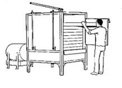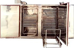 Most tray dryers are heated by air, which also removes the moist vapors. Typical area uses Tray ovens are Pharmaceuticals, Food, Cosmetics, Paints, Textiles used for drying Granules, Food, Powder and Chemicals.